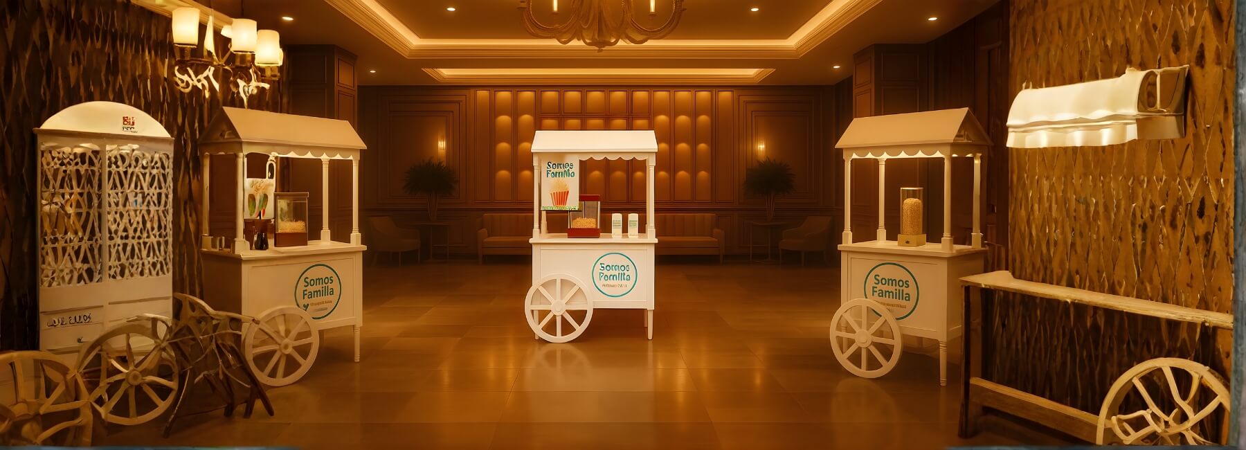 Variedad de carritos snacks y servicios para tu evento