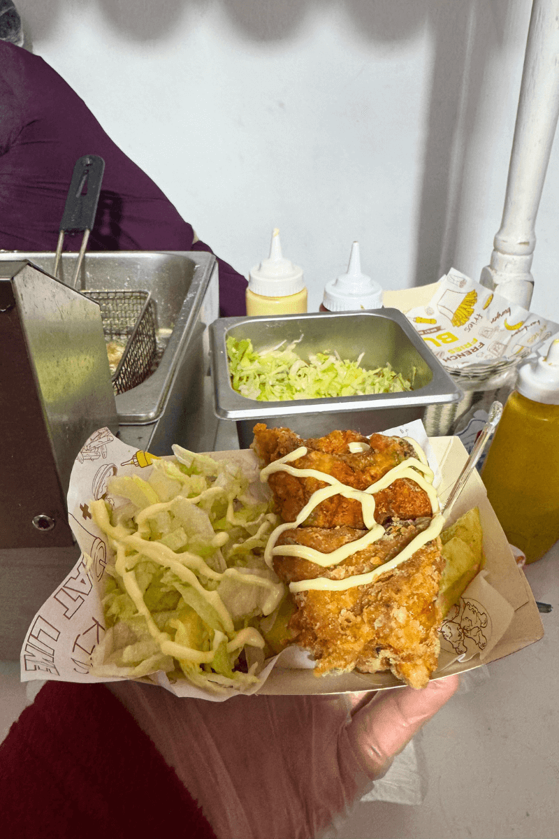 Pollito broaster bien crocante por fuera y jugoso por dentro, servido con papas fritas, ensalada fresca y todas las cremas. ¡Un platazo completo que encanta a todos!